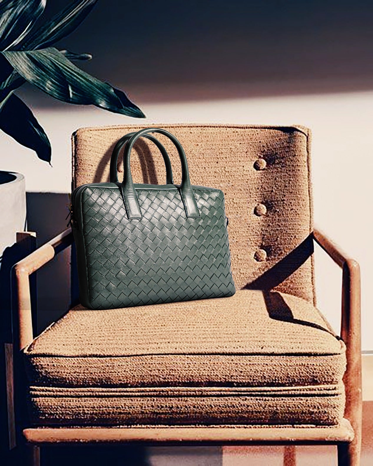 エレガンスを醸し出すレザーのラップトップバッグをご覧ください。最高品質の羊革から細心の注意を払って作られています。このバッグの精巧な編み込み細工は、優れた職人技とスタイルの象徴として際立っています。レザーのショルダーストラップは、快適さと洗練された雰囲気の両方を提供し、機能的なアクセサリーであると同時に、ファッションのステートメントでもあります。利便性のために、外側にはジッパーポケットが付いており、必需品に素早く簡単にアクセスできます。